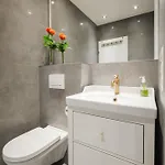 The property has parquetry flooring, soundproof windows, as well as entertainment options like a flat-screen TV with satellite channels. The apartment is also furnished with a sofa and a writing desk. Beds fitted with non-allergenic pillows are at guests' disposal. To ensure your comfort, a separate toilet, a bath, and a shower are provided at the accommodation. Moreover, there are free toiletries and towels as well.